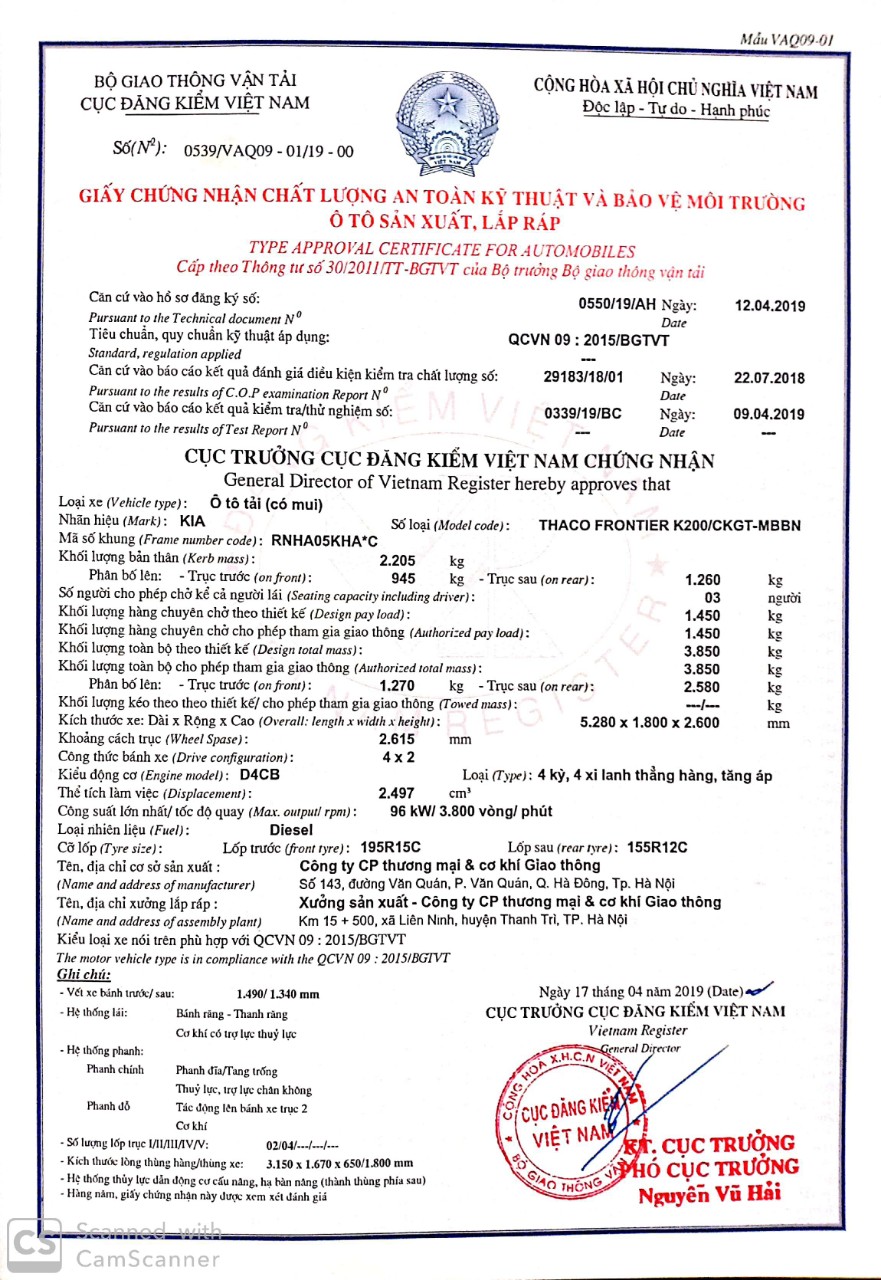 Ô tô THACO FRONTIER K200 mui bạt bửng nâng