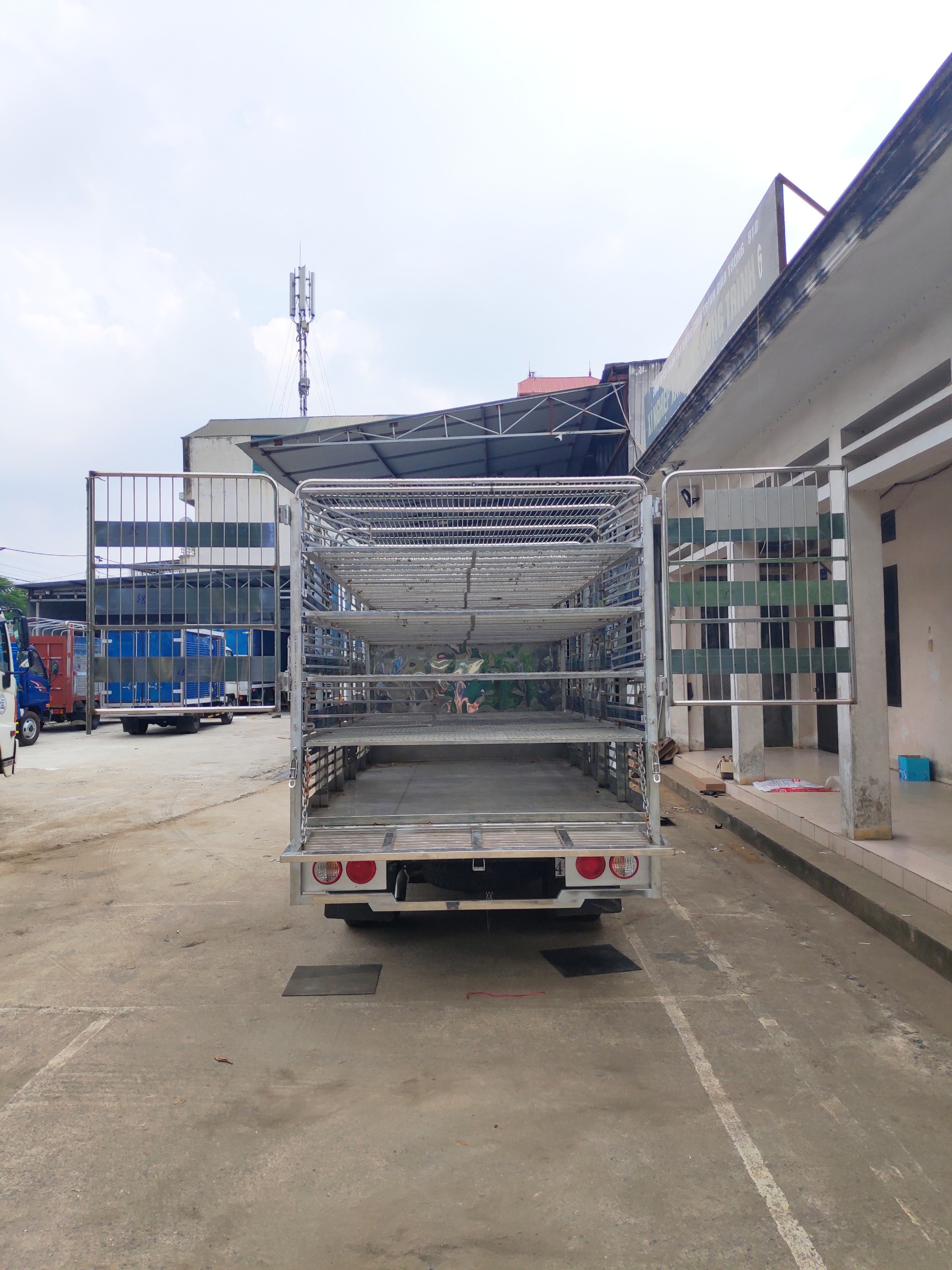 Ô tô Thaco Frontier K250 chuyên chở gia cầm, kết cấu đảm bảo vững chắc với 5 sàn, thông thoáng, sàn và khung xương làm bằng inox, chống rỉ, dễ dàng vệ sinh, đánh rửa,...