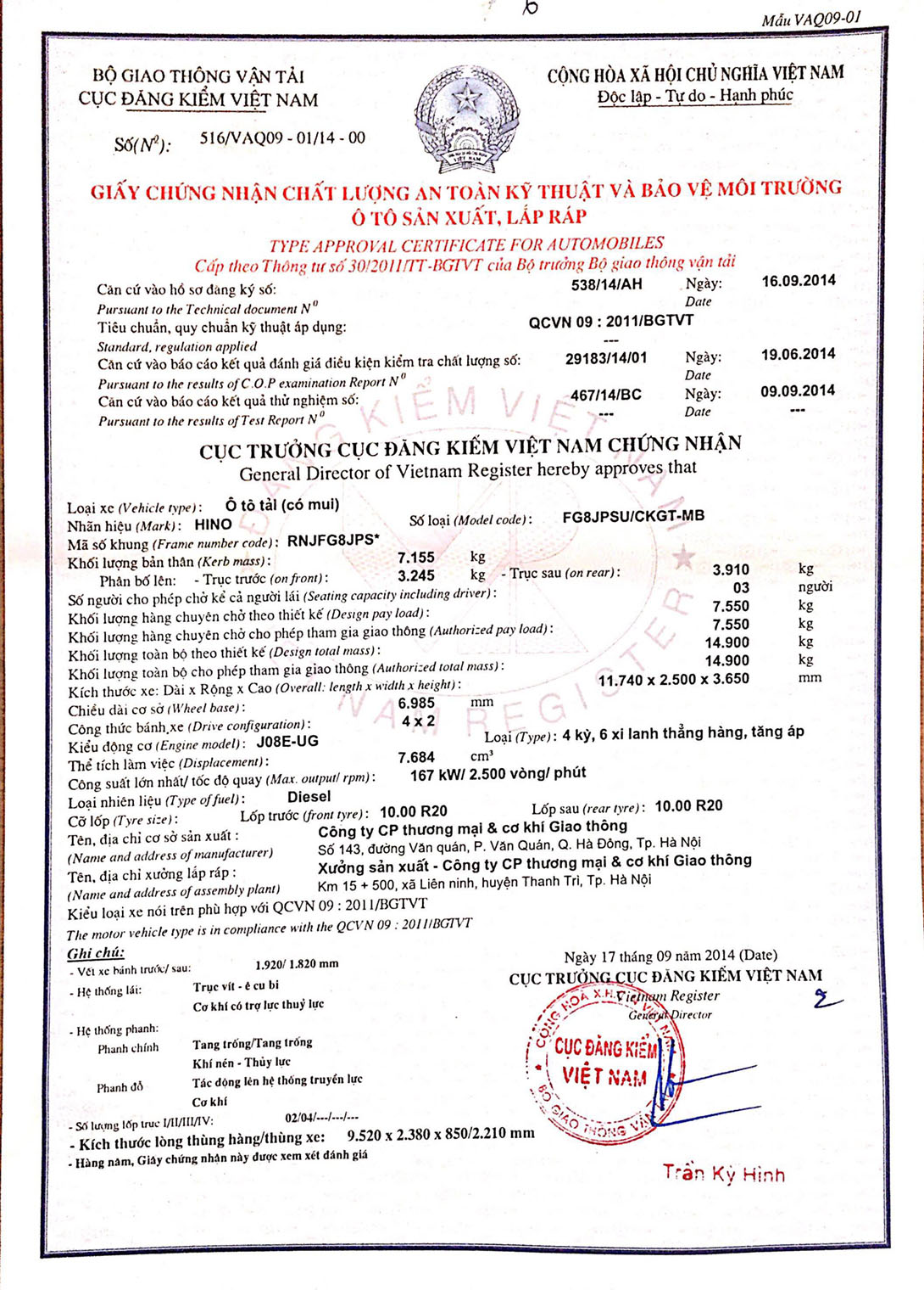 Nhãn hiệu, số loại của phương tiện |