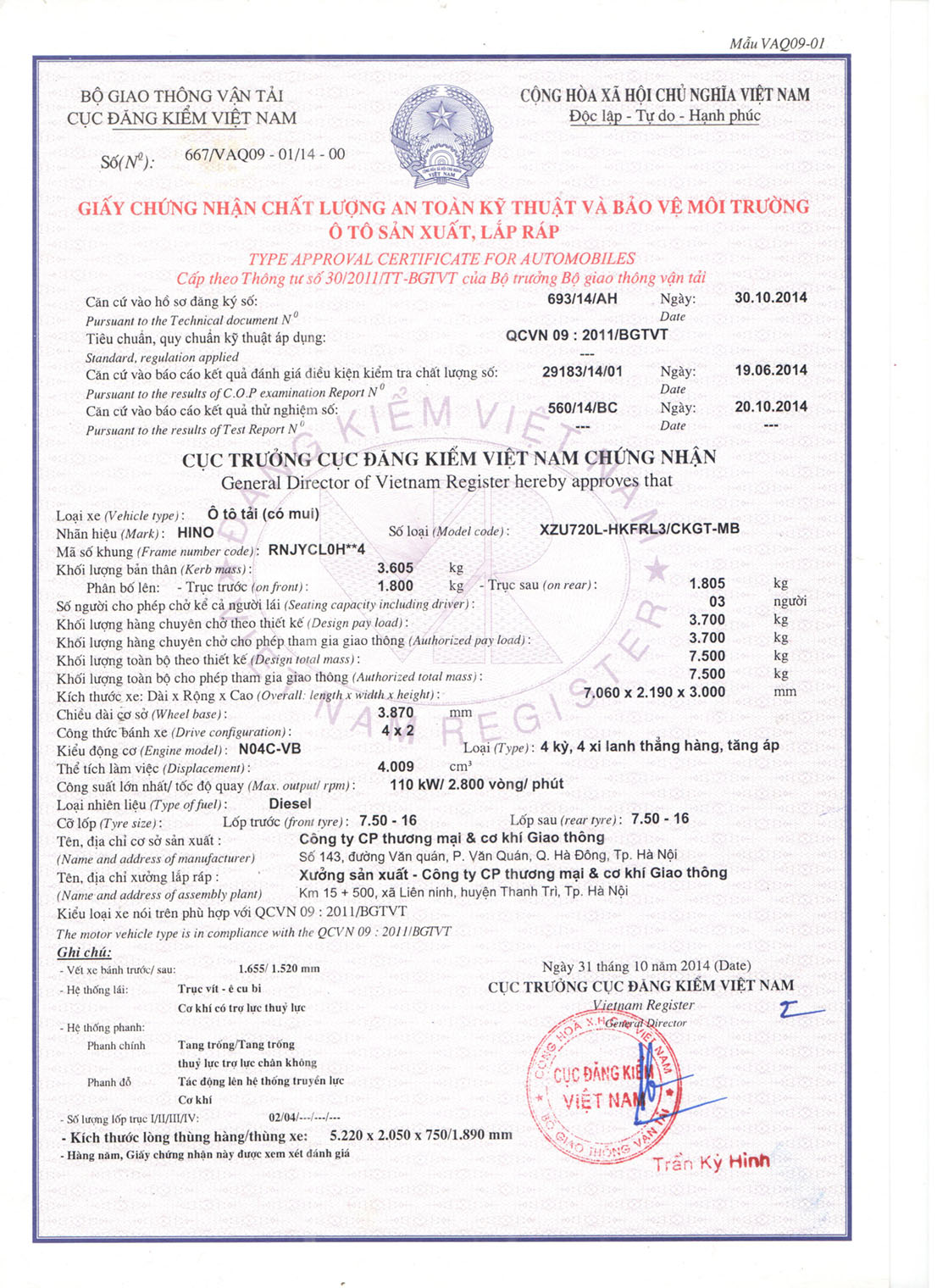 Khối lượng toàn bộ cho phép tham gia giao thông (kg) |