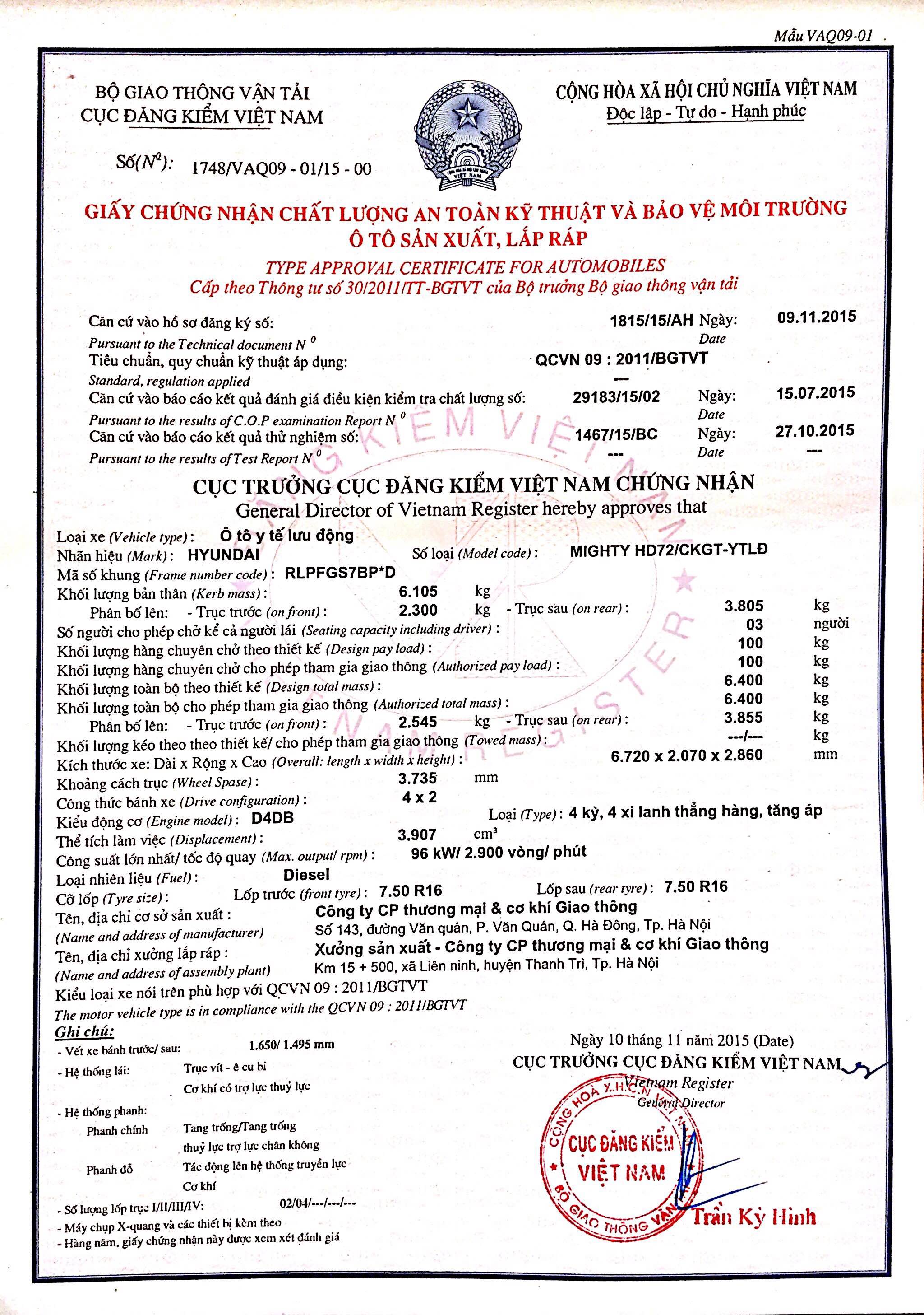 HYUNDAI MIGHTY HD72/CKGT-YTLĐ |